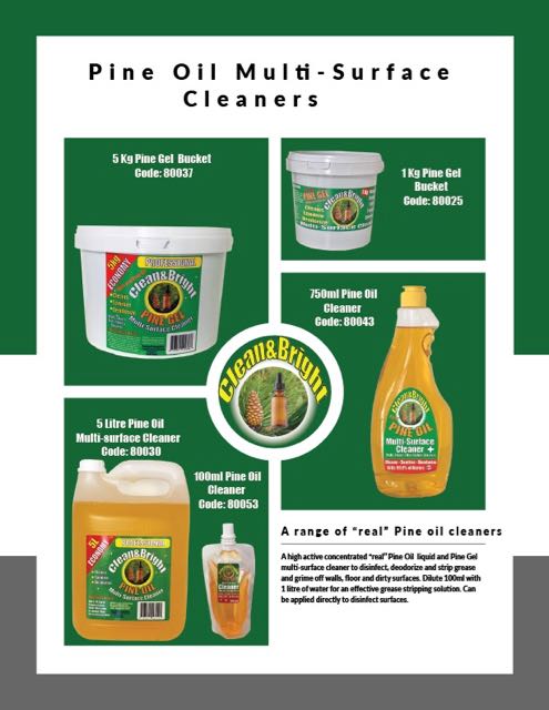 Clean&Bright is our economy brand that offer customers exceptional value for money cleaning products in an around the house. The range consists of dishwashing liquid, pine gel, our recolutionary pine oil cleaner as well as a pine oil disinfecting spray.