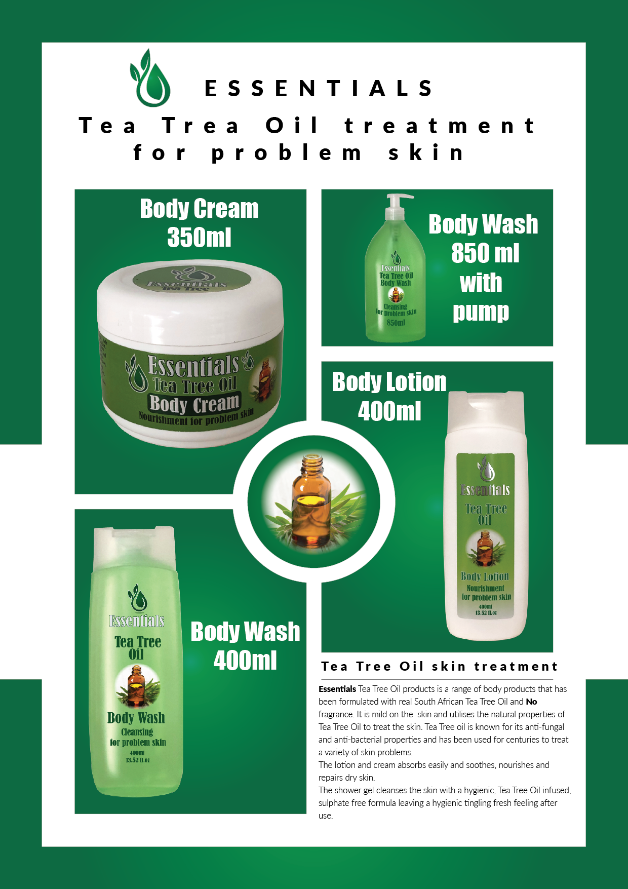 Our "Essentials" products are fragrance free and use the anti-fungal and anti-bacterial properties of tea tree oil to promote healthy skin care.